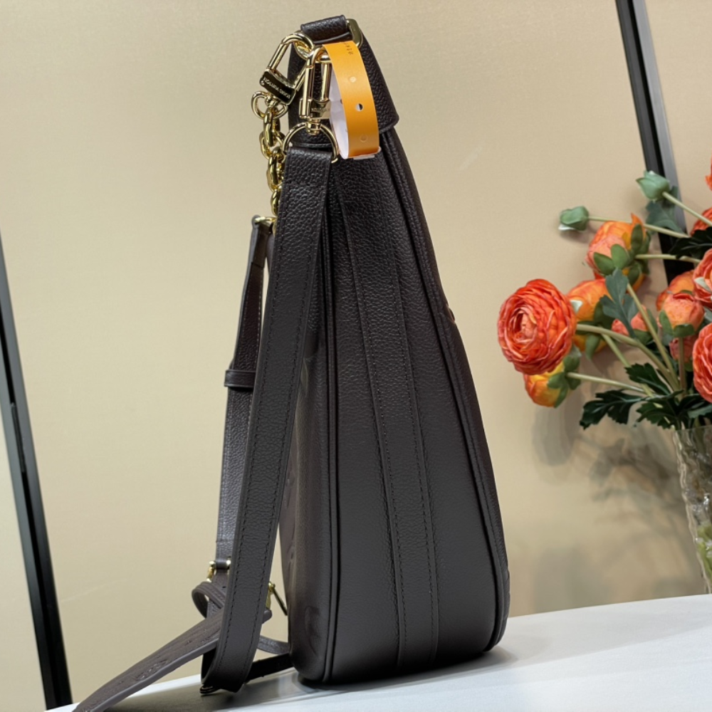 This stylish hobo bag is reimagined in a rich chocolate-hued embossed leather, complemented by a gold-toned chain and matching hardware. Designed for versatility, it features a removable zipped pouch to keep essentials organized and secure. Effortlessly chic, it can be worn crossbody, carried by hand, or slung over the shoulder for a relaxed city look.